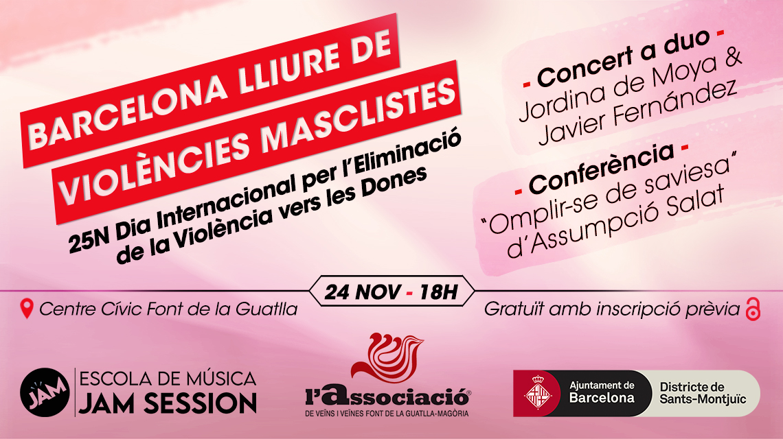 El 24 de noviembre nos reuniremos en el Centre Cívic Font de La Guatlla para llevar a cabo un acto conmemorativo, bajo el eslogan «BARCELONA LLIURE DE VIOLÈNCIES…